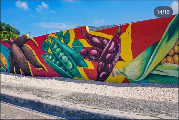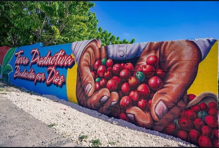 Un mural de 150 m? embellece los espacios públicos de La Colonia y la calle Colón, resaltando productos como café, aguacate, banano, maíz, yuca y legumbres, junto a la flora y fauna que distinguen a este municipio.