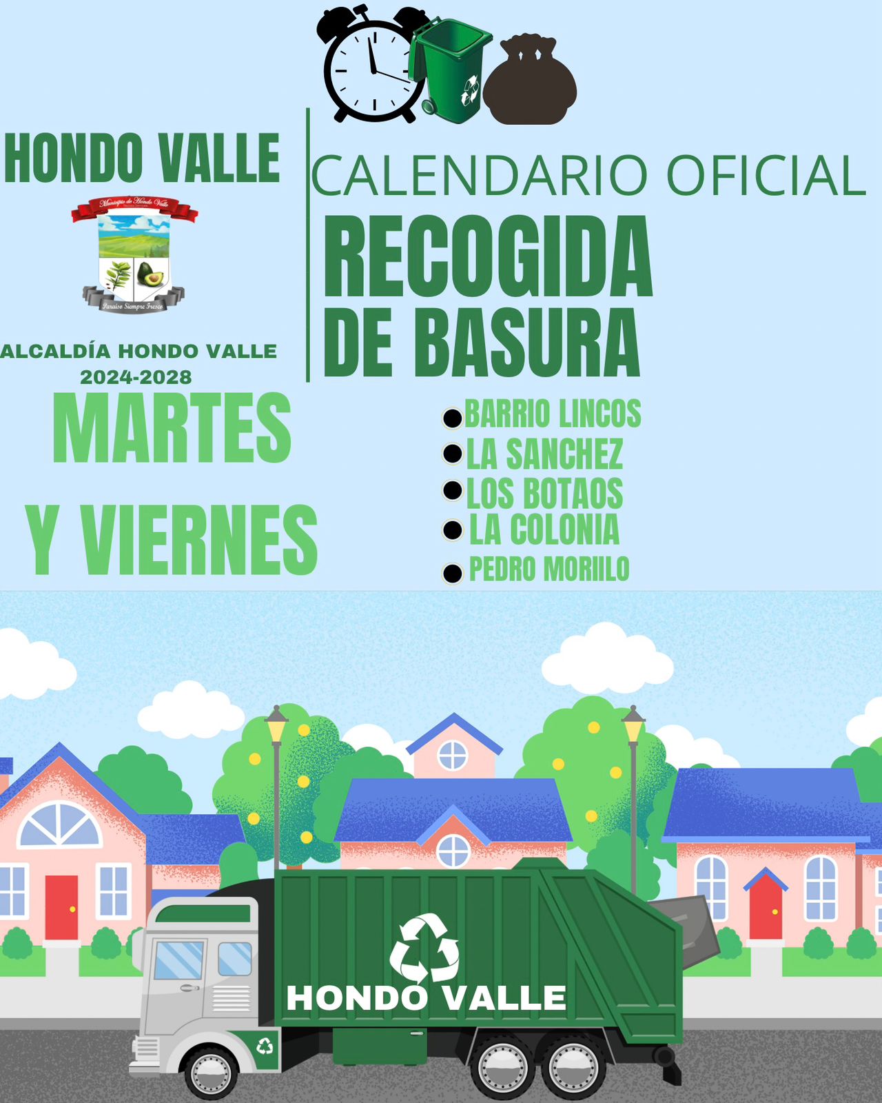 El Ayuntamiento de Hondo Valle ha lanzado un nuevo calendario oficial de recogida de basura diseñado para optimizar la gestión de residuos en toda la comunidad. Este calendario detalla los días y horarios precisos en los cuales los servicios de recolección estarán disponibles durante toda la semana, asegurando así un mejor manejo de residuos para todos los residentes.